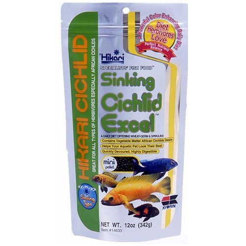 Hikari Sinking Cichlid Excel is A specially formulated daily diet for herbivorous (plant eating) cichlids and larger tropical fish offering higher levels of vegetable matter.